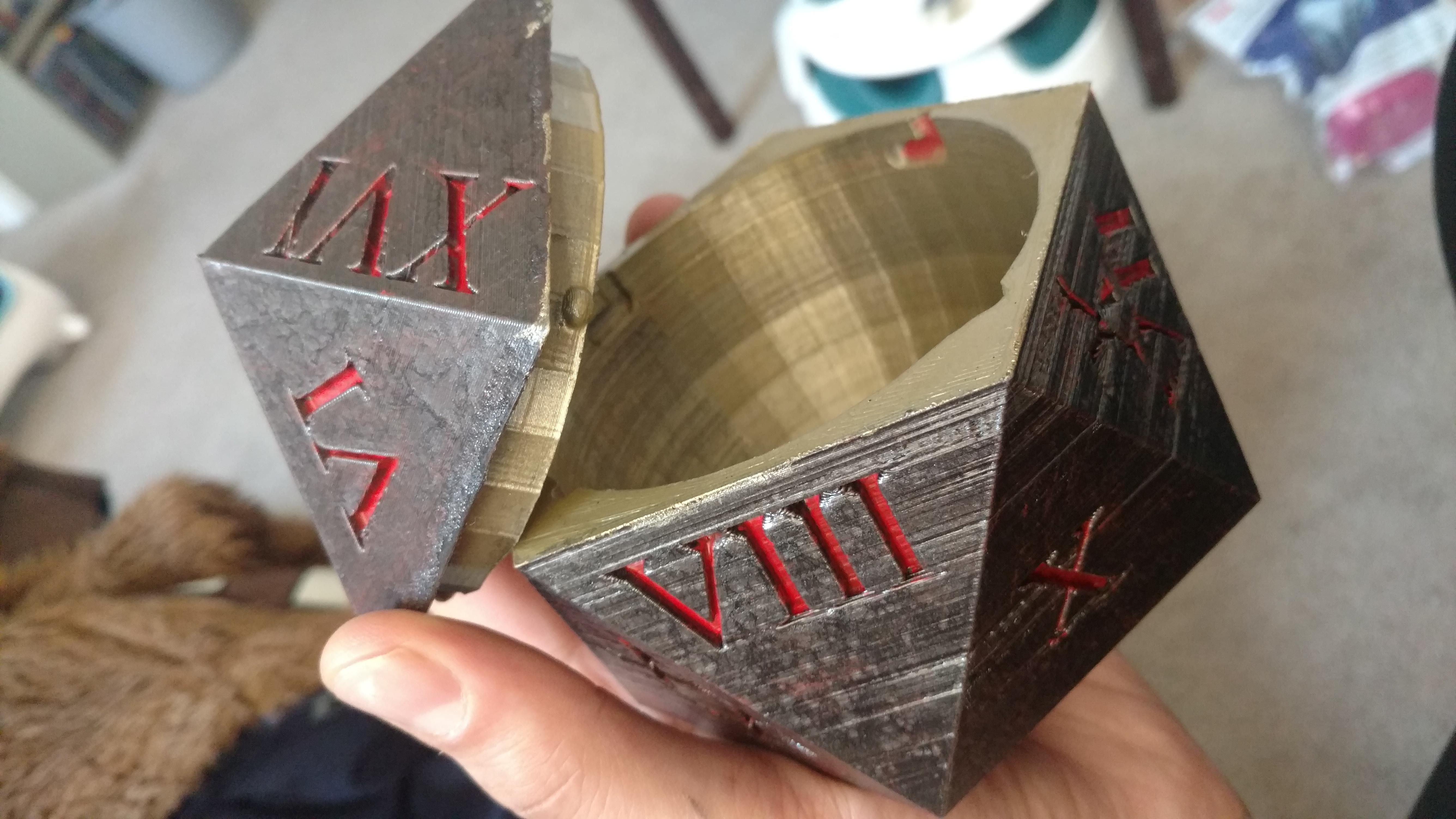 Comments (1) reviews (6) be careful not to lose a finger in this devilishly dangerous dice box!.. 375 dice box models are available for download. Add to wish list remove from wish list. Can be used as a storage device for your dice or minis, or as a story piece itself. All it takes is a 3d printer and some finishing touches and you'll have your own custom dice box. These models contain a zip archive with stl files and previews also has smaller number of polygons and therefore require less computing power to render.. All it takes is a 3d printer and some finishing touches and you'll have your own custom dice box.